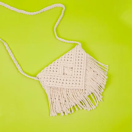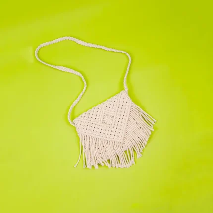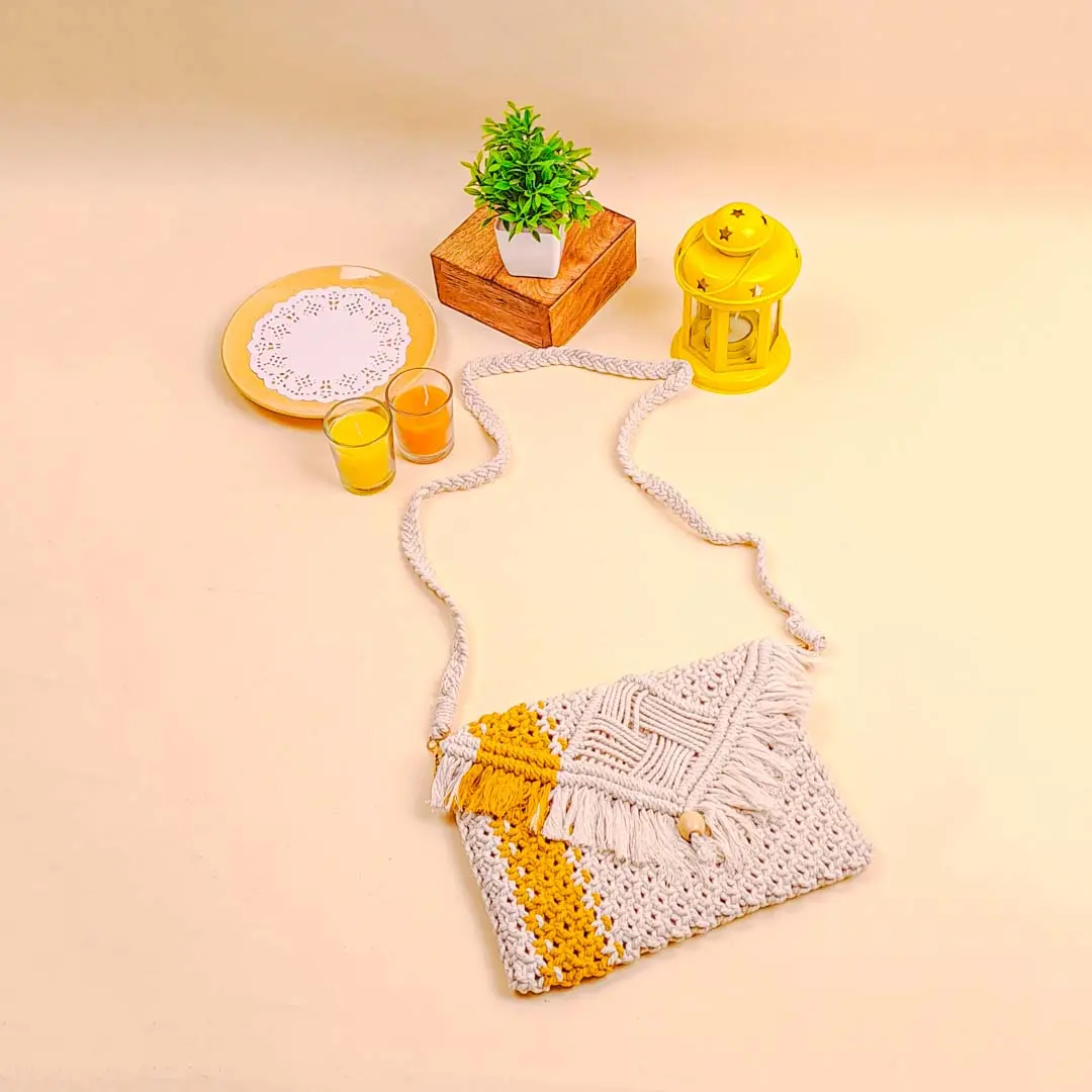 Yellow Striped White Macrame Sling Bag
