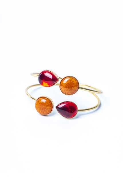 Brass Resin Teardrop Circle Open Cuff Bangle