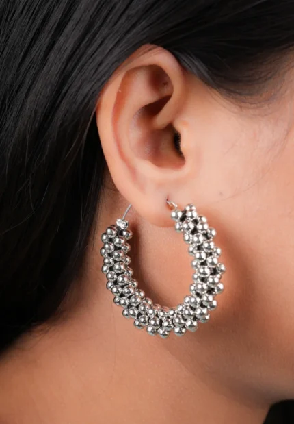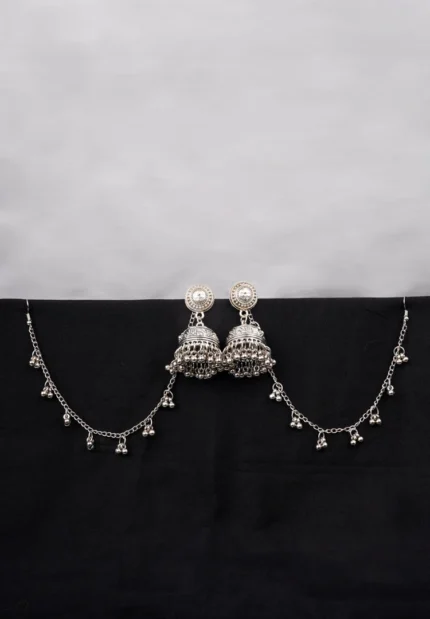 Oxidised Triple Layered Jhumka Hair Chain Earrings