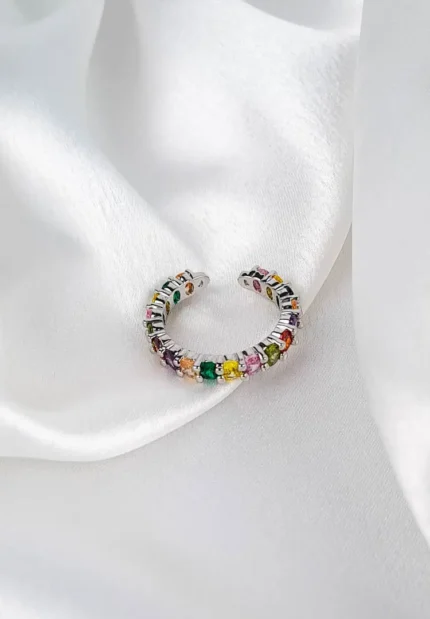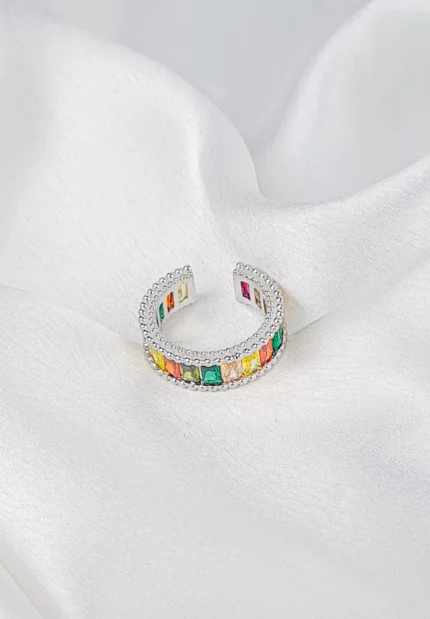 Original price was: ₹499.00.₹299.00Current price is: ₹299.00. Incl. all taxesSilver Colourful Rectangular Gem Ring