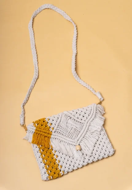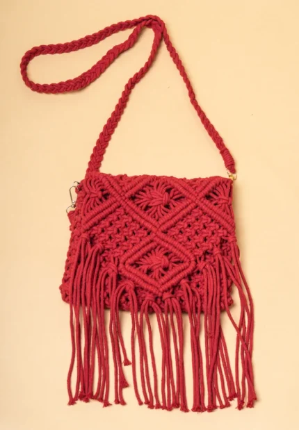 Original price was: ₹1,499.00.₹799.00Current price is: ₹799.00. Incl. all taxesRed Macrame Knotted Tassel Sling Bag