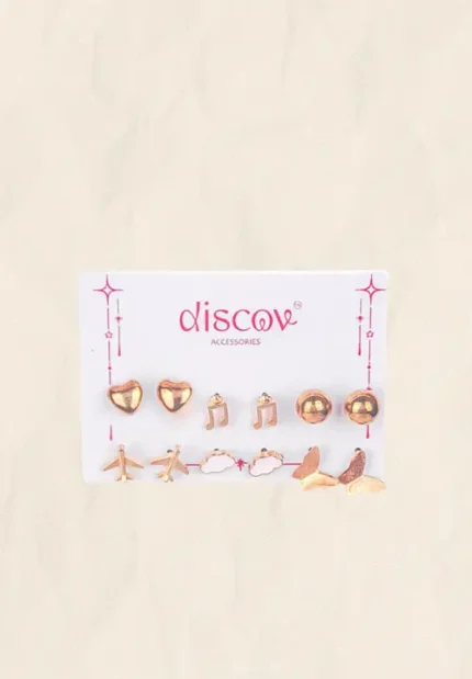 Original price was: ₹499.00.₹349.00Current price is: ₹349.00. Incl. all taxesSet of 6 Playful Golden Mini Stud Earrings